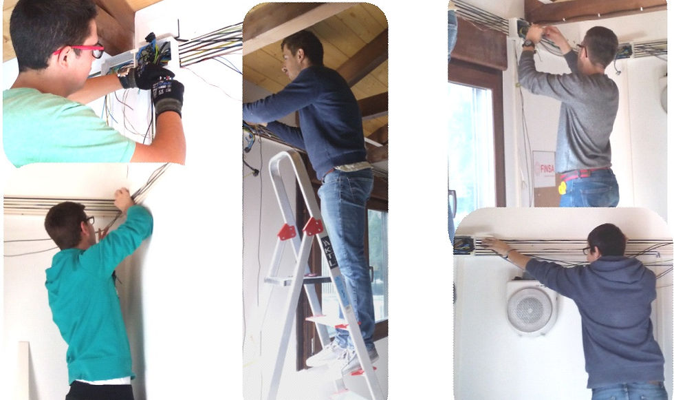 Los alumnos del ciclo de grado medio de instalaciones eléctricas y automáticas, han realizado como trabajo o proyecto, la instalación eléctrica de la vivienda durante el curso 2014-15 y su domótización en el curso 2015-16.
